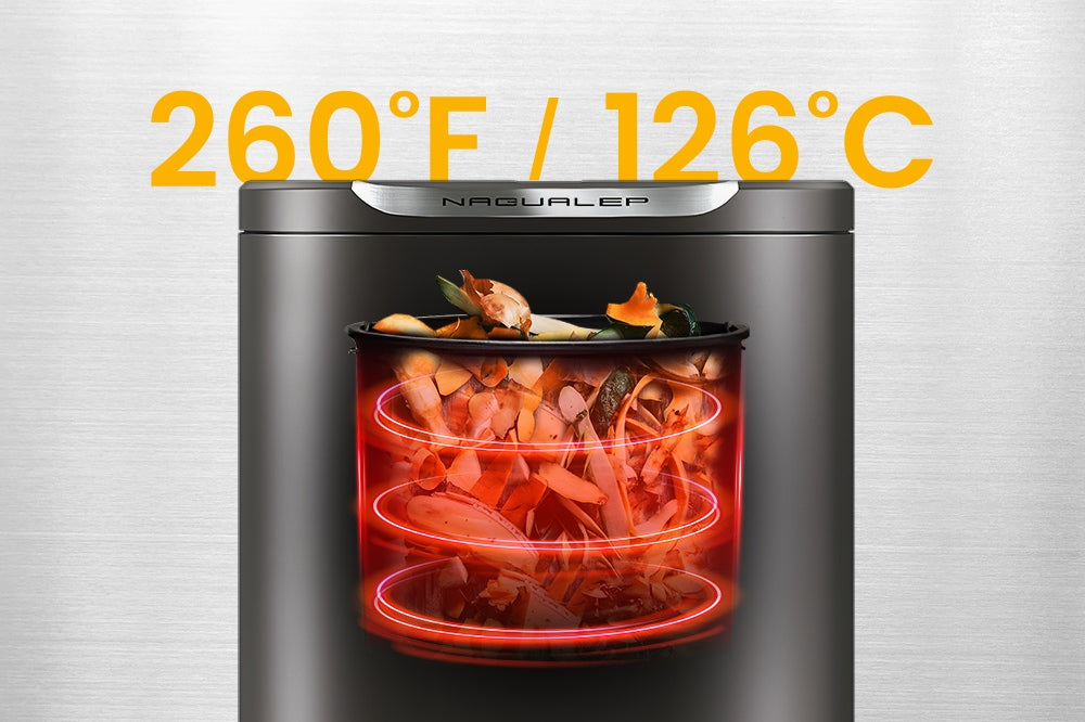 The inner wall CNC anti-stick polishing and food-grade ceramic coating prevents sticking. With a heating capability of up to 260 degrees Fahrenheit (126 degrees Celsius), it effortlessly dries the food waste and sterilize at the same time.